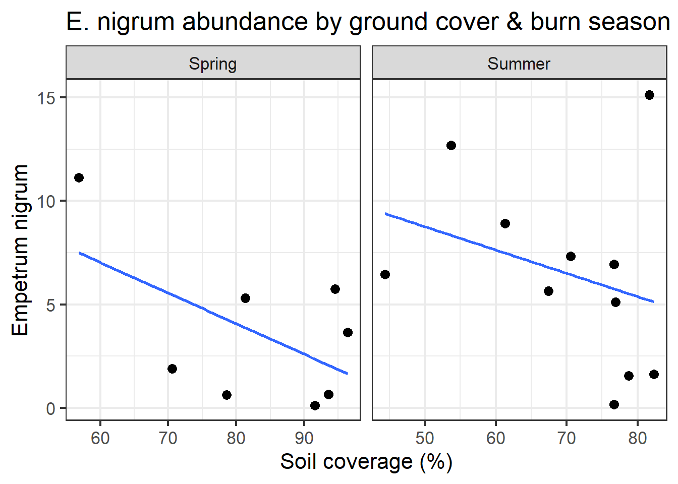 mutate()to make the bare soil more intuitive. For example, we might be more interested in how ground cover affects a species and simply use bare ground exposure as a proxy for ground cover, in which case we’d be more interested in plotting the inverse of the data at hand.